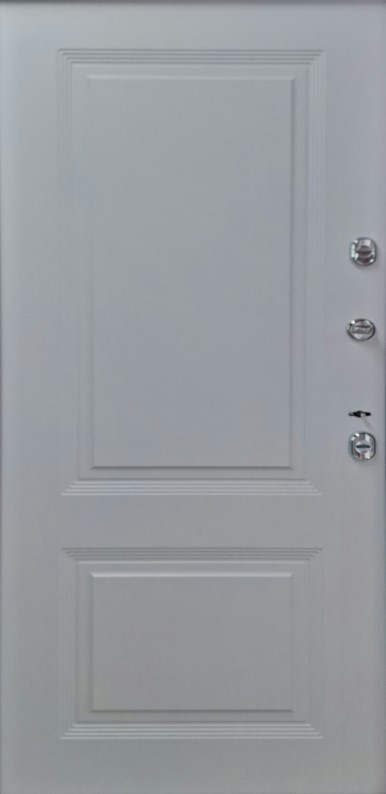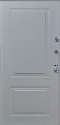 Дверь металлическая ДС "ТЕРМО ПРОФИ" (Серебро на чёрном, Внутр- Белая Шагрень, фрезер №64, фурн. хром) 6117
